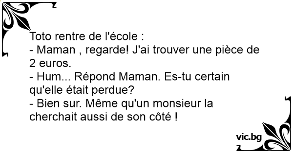 - Maman , regarde! J'ai trouver une pièce de 2 euros.