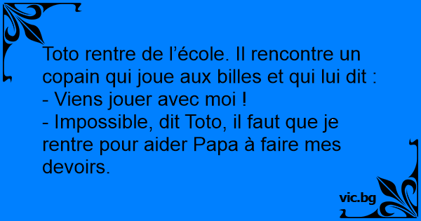 - Impossible, dit Toto, il faut que je rentre pour aider Papa à faire mes devoirs.