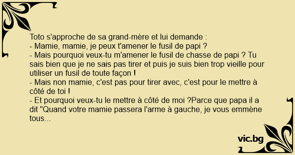 - Mamie, mamie, je peux t'amener le fusil de papi ?