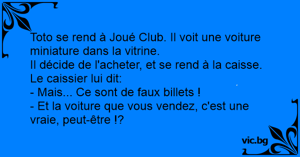 Toto se rend à Joué Club. Il voit une voiture miniature dans la vitrine.