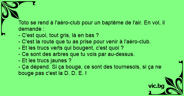 Toto se rend à l'aéro-club pour un вартêме de l'air. En vol, il demande :