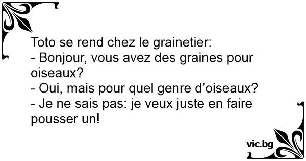 - Bonjour, vous avez des graines pour oiseaux?