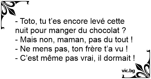 - Toto, tu t’es encore levé cette nuit pour manger du chocolat ?