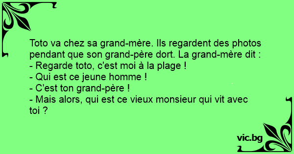 Toto va chez sa grand-mère. Ils regardent des photos pendant que son grand-père dort. La grand-mère dit :
