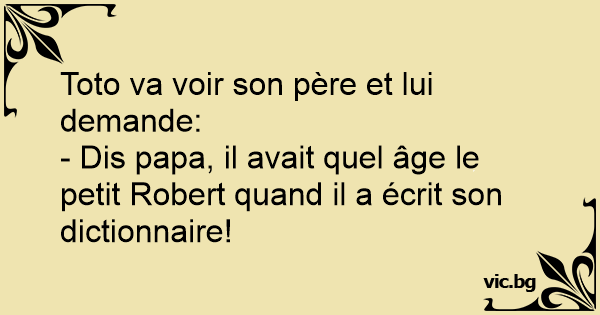 - Dis papa, il avait quel âge le petit Robert quand il a écrit son dictionnaire!