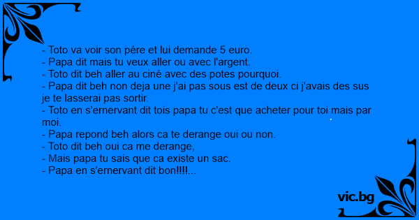- Papa dit beh non deja une j'ai pas sous est de deux ci j'avais des sus je te lasserai pas sortir.