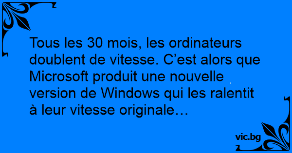 Tous les 30 mois, les ordinateurs doublent de vitesse. C’est alors que Microsoft produit une nouvelle version de Windows qui les ralentit à leur vitesse originale…