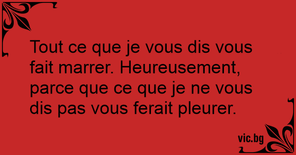 Tout ce que je vous dis vous fait marrer. Heureusement, parce que ce que je ne vous dis pas vous ferait pleurer.