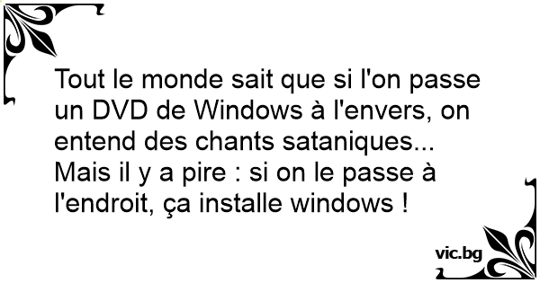 Tout le monde sait que si l'on passe un DVD de Windows à l'envers, on entend des chants sataniques...