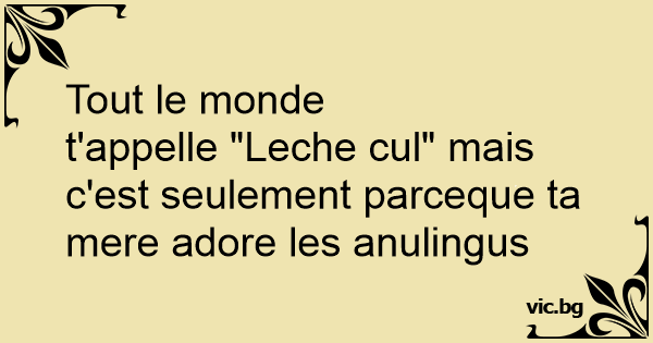 Tout le monde t'appelle "Leche cul" mais c'est seulement parceque ta mere adore les anulingus