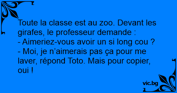 Toute la classe est au zoo. Devant les girafes, le professeur demande :