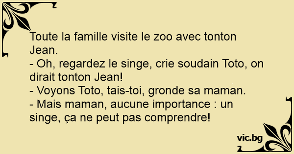 - Oh, regardez le singe, crie soudain Toto, on dirait tonton Jean!