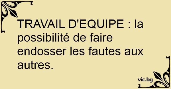 TRAVAIL D'EQUIPE : la possibilité de faire endosser les fautes aux autres.