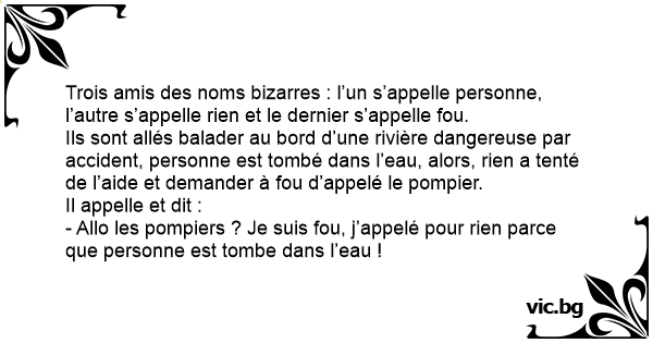 - Allo les pompiers ? Je suis fou, j’appelé pour rien parce que personne est tombe dans l’eau !