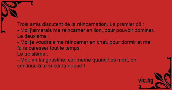 Trois amis discutent de la réincarnation. Le premier dit :