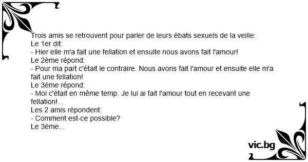 Trois amis se retrouvent pour parler de leurs ébats sexuels de la veille: