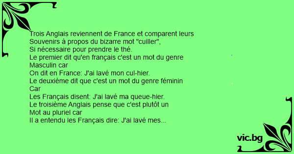 Les Français disent: J'ai lavé ma queue-hier.