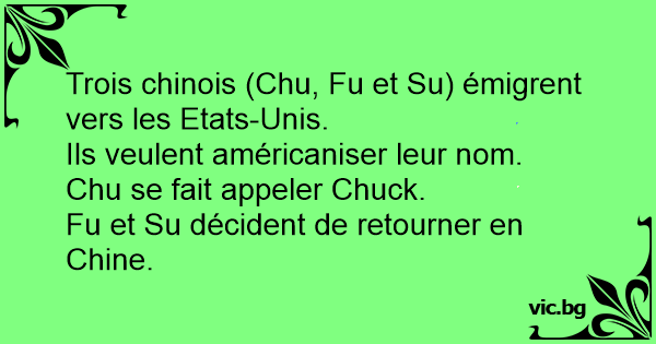 Trois chinois (Chu, Fu et Su) émigrent vers les Etats-Unis.