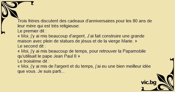 Trois frères discutent des cadeaux d'anniversaires pour les 80 ans de leur mère qui est très religieuse: