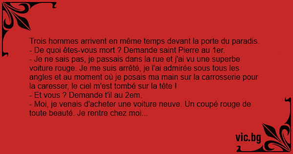 - De quoi êtes-vous mort ? Demande sаinт Pierre au 1er.