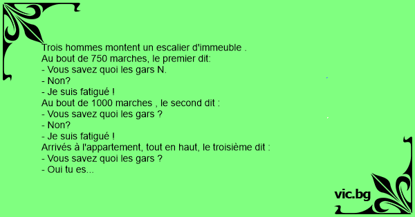 Arrivés à l'appartement, tout en haut, le troisième dit :