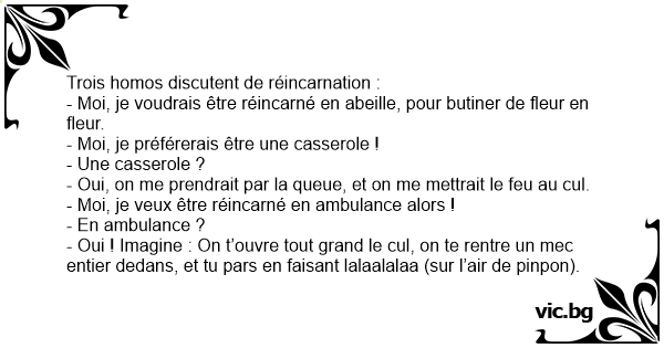 Trois homos discutent de réincarnation :