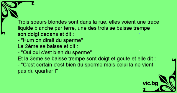 Trois soeurs blondes sont dans la rue, elles voient une trace liquide blanche par terre, une des trois se baisse trempe son doigt dedans et dit :