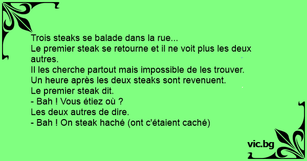 - Bah ! On steak haché (ont c'étaient caché)