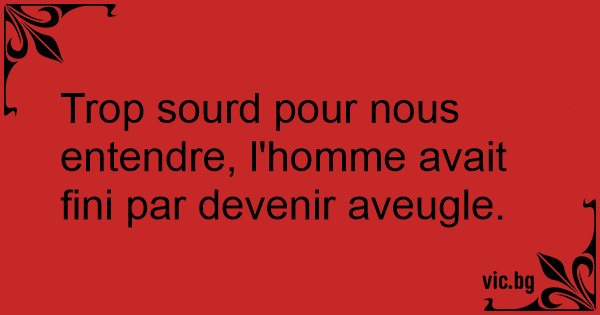 Trop sourd pour nous entendre, l'homme avait fini par devenir aveugle.