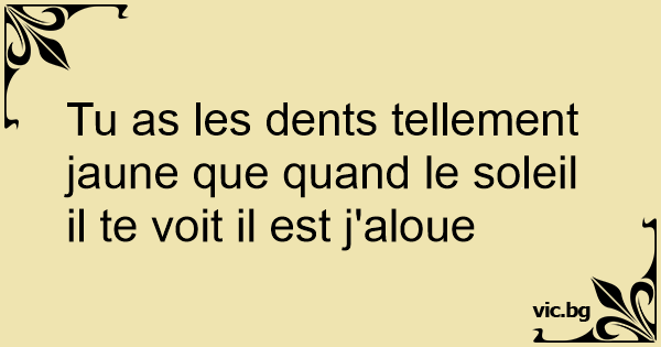 Tu as les dents tellement jaune que quand le soleil il te voit il est j'aloue