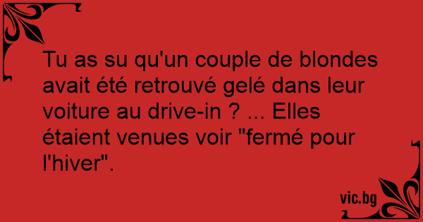Tu as su qu'un couple de blondes avait été retrouvé gelé dans leur voiture au drive-in ? ... Elles étaient venues voir "fermé pour l'hiver".