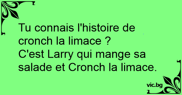 Tu connais l'histoire de cronch la limace ?<br />C'est Larry qui mange sa salade et Cronch la limace.