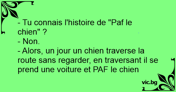 - Alors, un jour un chien traverse la route sans regarder, en traversant il se prend une voiture et PAF le chien