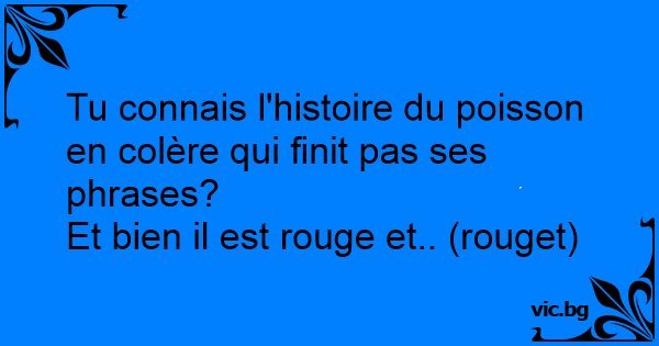Tu connais l'histoire du poisson en colère qui finit pas ses phrases?
