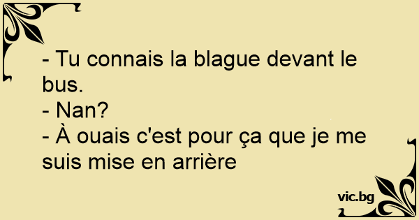 - Tu connais la blague devant le bus.