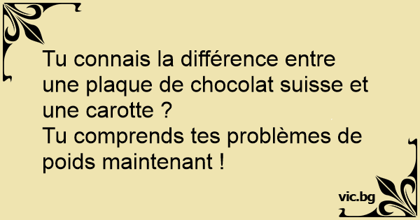 Tu connais la différence entre une plaque de chocolat suisse et une carotte ?