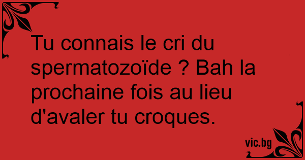 Tu connais le cri du spermatozoïde ? Bah la prochaine fois au lieu d'avaler tu croques.