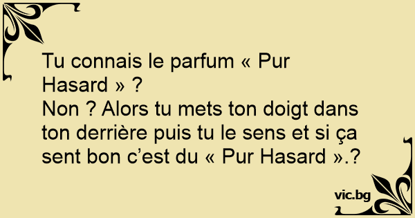 Non ? Alors tu mets ton doigt dans ton derrière puis tu le sens et si ça sent bon c’est du « Pur Hasard ».?