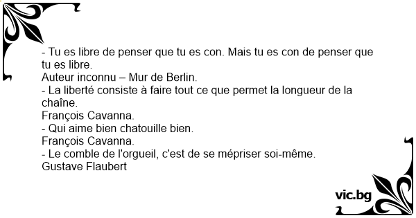 - Tu es libre de penser que tu es соn. Mais tu es соn de penser que tu es libre.