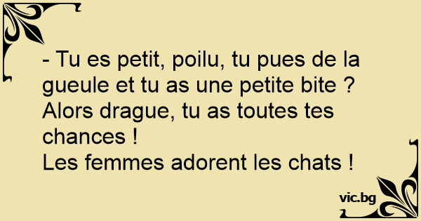 - Tu es petit, poilu, tu pues de la gueule et tu as une petite bite ? Alors drague, tu as toutes tes chances !