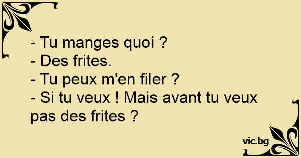 - Si tu veux ! Mais avant tu veux pas des frites ?