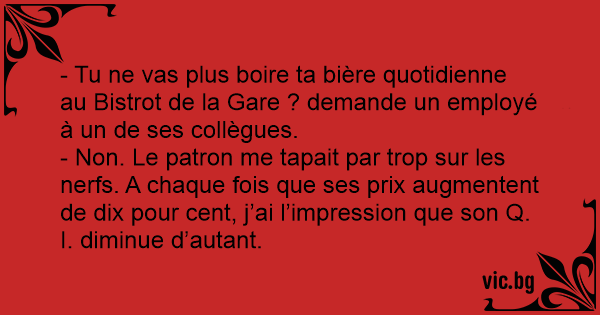 - Tu ne vas plus boire ta bière quotidienne au Bistrot de la Gare ? demande un employé à un de ses collègues.