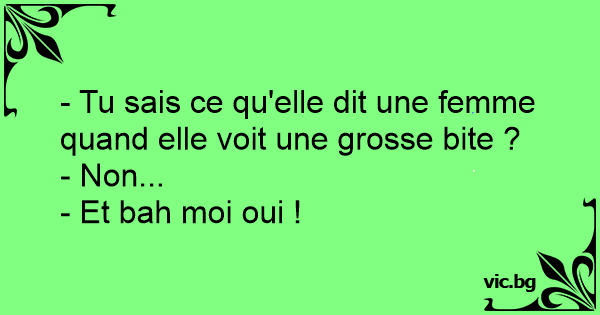 - Tu sais ce qu'elle dit une femme quand elle voit une grosse bite ?- Non...- Et bah moi oui ! 0 0 0 Blagues sur les hommes