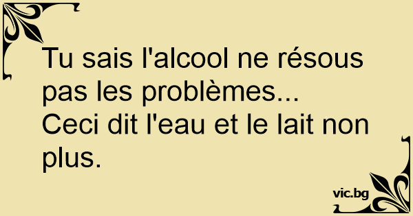 Je ne prends pas de drogue, pourtant tout ce que je fais est stupéfiant ! L'alcool ne résout pas les problèmes... Remarque, le lait et l'eau non plus !