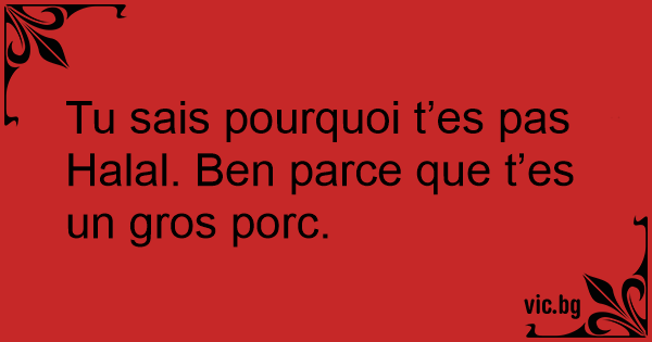 Tu sais pourquoi t’es pas Halal. Ben parce que t’es un gros porc.