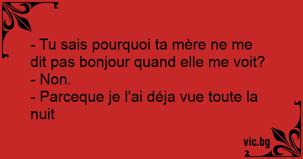 - Tu sais pourquoi ta mère ne me dit pas bonjour quand elle me voit?