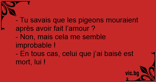 - Tu savais que les pigeons mouraient après avoir fait l’amour ?