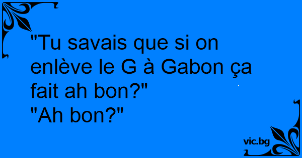 "Tu savais que si on enlève le G à Gabon ça fait ah bon?"