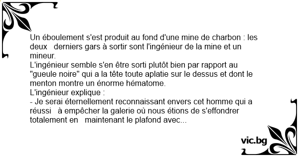 - Je serai éternellement reconnaissant envers cet homme qui a réussi à empêcher la galerie où nous étions de s'effondrer totalement en maintenant le plafond avec sa tête !