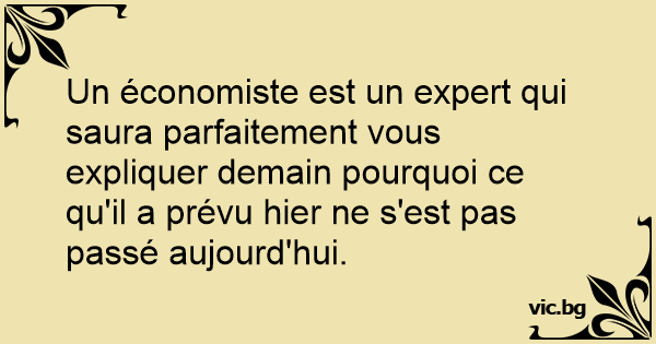 Un économiste est un expert qui saura parfaitement vous expliquer demain pourquoi ce qu'il a prévu hier ne s'est pas passé aujourd'hui.